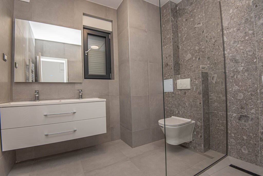 Die Villa Palme gehört zu einer neuen Überbauung von insgesamt vier Villen am Rande von Vodice. Die Villen befinden sich 1600m vom Strand und 1300m vom Stadtzentrum entfernt. Damit bieten sie die richtige Balance zwischen Ruhe und Aktivität. Sie verfügen über Meerblick und sind hochwertig ausgebaut. Die Villa “A” hat eine Wohnfläche von insgesamt 136 m2, verteilt auf zwei Etagen. Das Erdgeschoss besteht aus einer Küche mit Ess- und Wohnzimmer, Flur, Abstellraum und Gästetoilette. Das 1.OG beherbergt drei Schlafzimmer und zwei Badezimmer. Die Villa verfügt über eine grosszügige Dachterrasse mit einer Fläche von 52m2. Diese bietet die Möglichkeit für ein Sonnendeck und ist für einen eventuellen Whirlpool vorbereitet. Der Garten ist komplett eingezäunt und hat eine Fläche von 200m2 inklusive eines geräumigen Parkplatzes, Grillplatz im Freien und einem 22m grossem Pool. Verpassen Sie diese Gelegenheit auf keinen Fall und nehmen Sie so bald wie möglich mit uns Kontakt auf, denn falls Sie die Villa gerade nicht privat nutzen, können Sie ihre Investition auch über airbnb oder Booking amortisieren, denn die Immobilienvermietung an Touristen boomt in Kroatien.